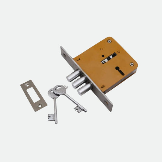 Brass & Iron material Door lock, Silver Satin Finish, 2 Keys (WDL-2)