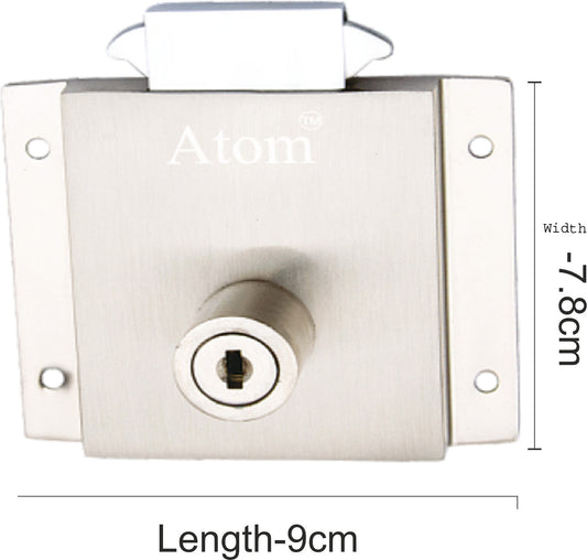Atom Steel, Brass & Iron material Door lock | Silver Satin Finish | 2 Keys | Lock for Double Door, Door, Main door, home door, Bedroom, Living Room, WDL-3