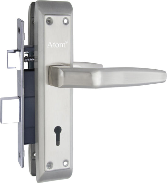 Stainless Steel Mortise Door Handle Set with Lock Body, Silver Satin Finish (Teana)