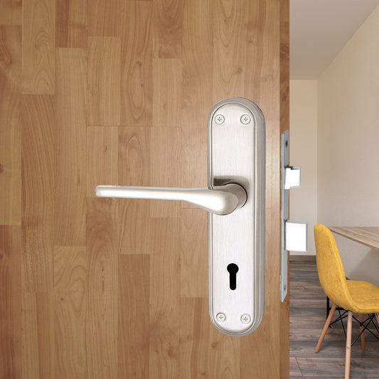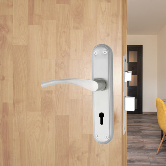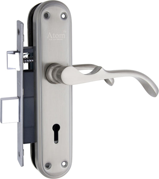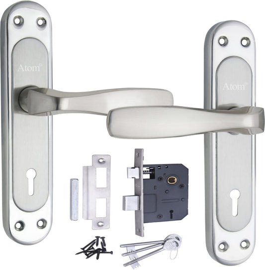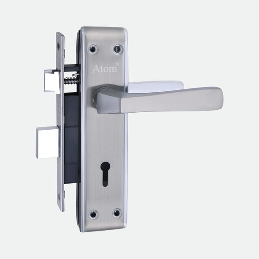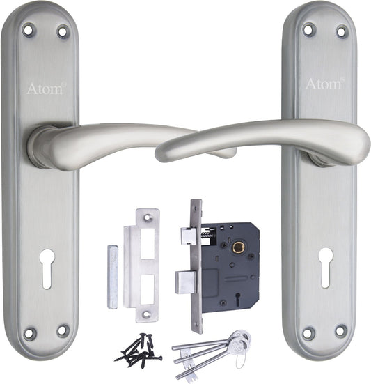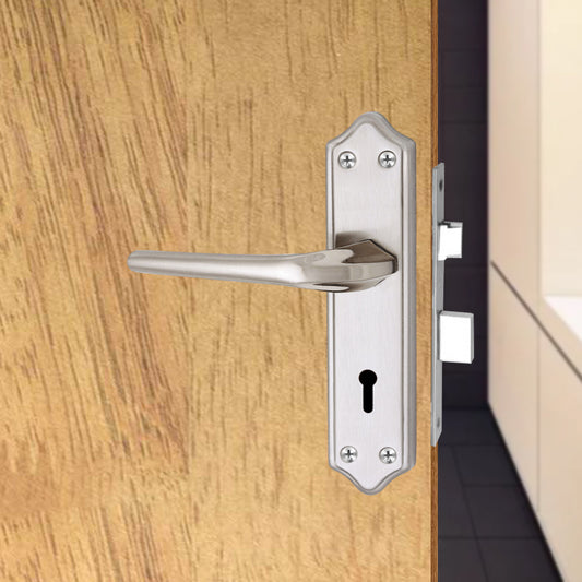 Stainless Steel Mortise Door Handle Set with Lock Body, Silver Satin Finish (Skala)