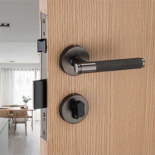 Iron Mortise Door Handle Set with Lock Body, Finish Black Silver, (3 Keys) (6 Lever Double Stage Lockset) (7 Inch) (703-KY)
