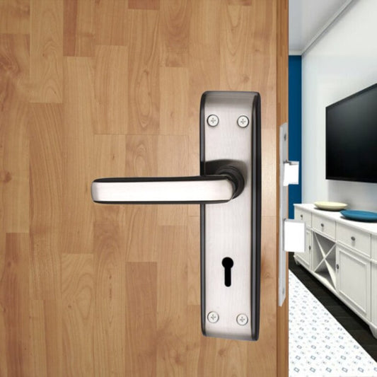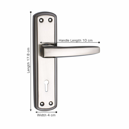 Iron Mortise Door Handle Set with Lock Body, Black Silver & CP Matt Finish (3 Keys) (6 Lever Double Stage) (7 Inch) (WIH-MERCURY-KY)