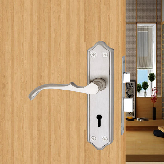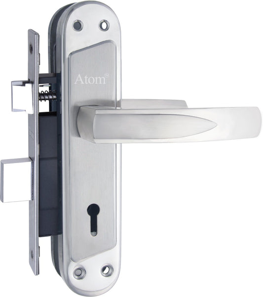 Stainless Steel Mortise Door Handle Set with Lock Body, Silver Satin Finish (Venus)