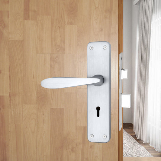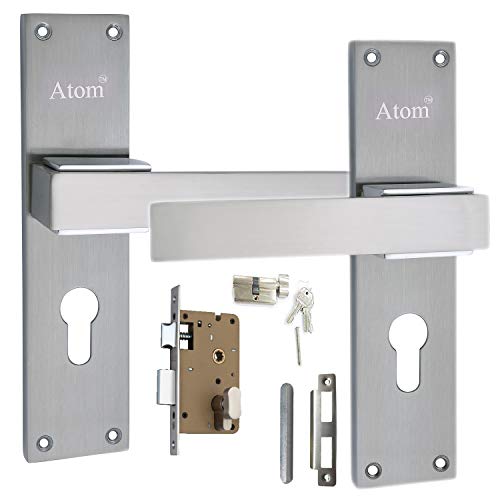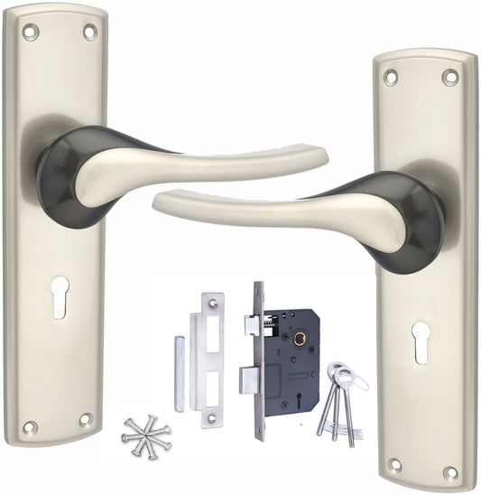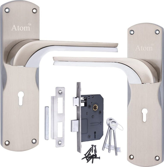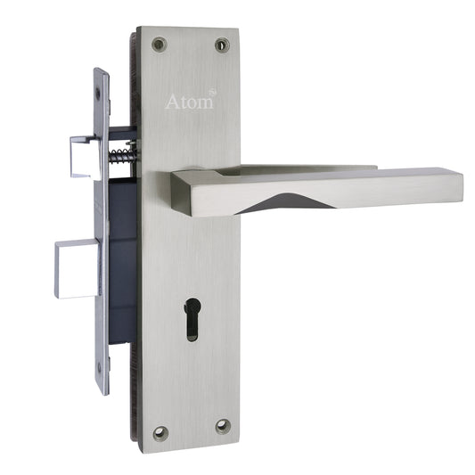 Mortise Door Handle Set with Lock Body, 3 Keys, Silver Satin Finish (O-32Cy)