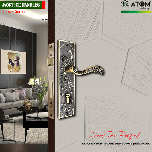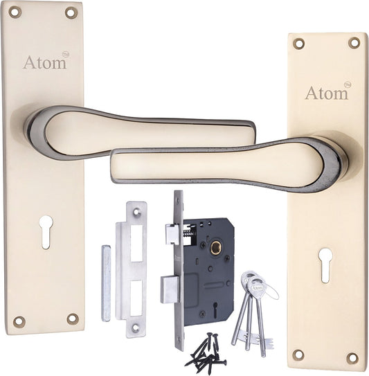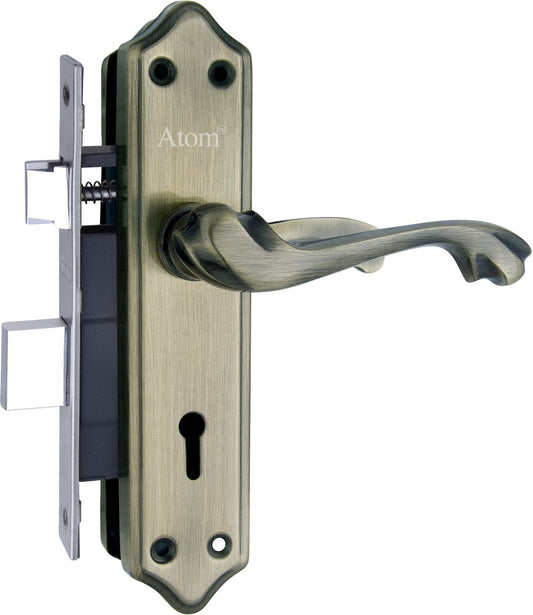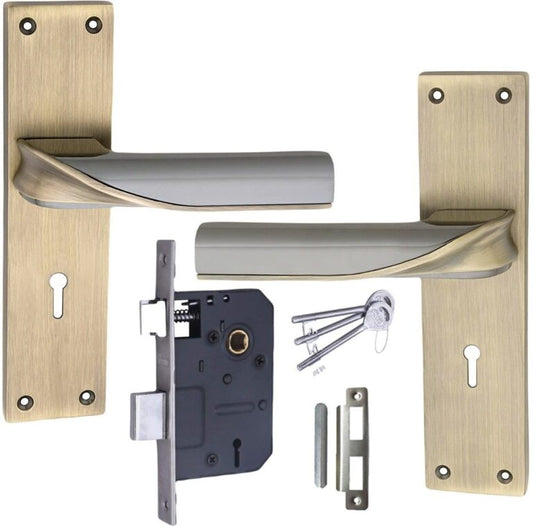 Iron Mortise Door Handle Set with Lock Body, Finish Brass Antique & CP MATT (3 Keys) (6 Lever Double Stage Lockset) (8 Inch) (805-KY)