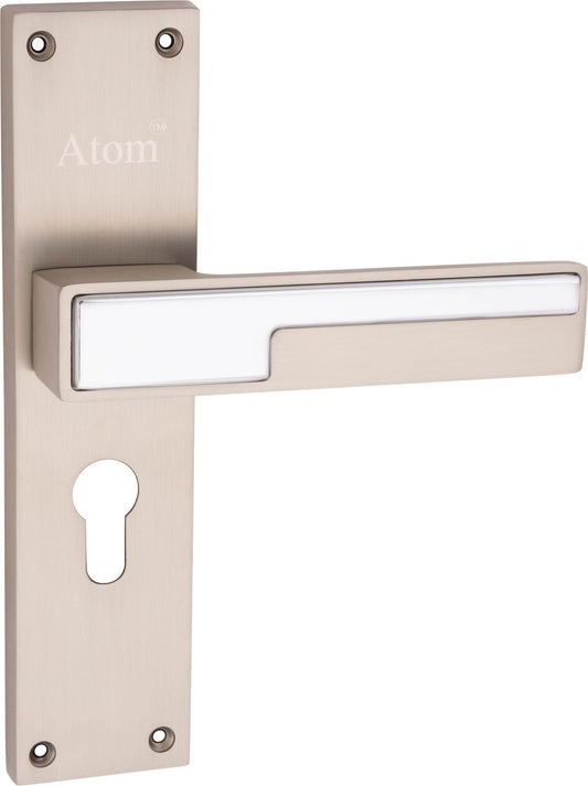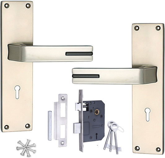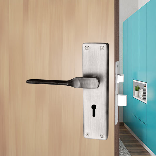 Stainless Steel Mortise Door Handle Set with Lock Body, Silver Satin & Brass Antique Finish (Pluto)