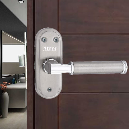 Stainless Steel Bathroom Door Lock, Silver Satin Finish, Keyless Mortise Handle with Baby Latch (Skoda-BL)