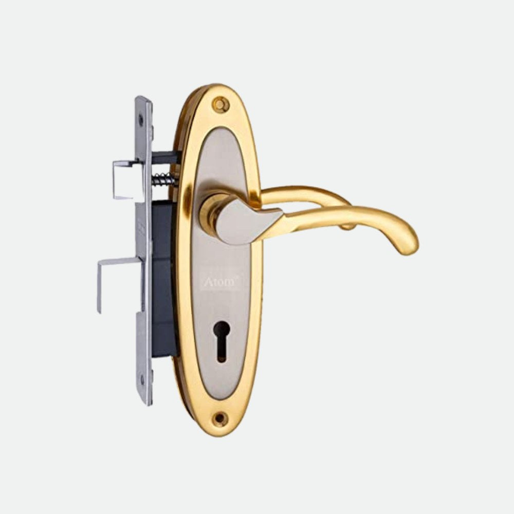 Iron Mortise Door Handle Set with Lock Body, Finish Black Silver, Brass Antique, Silver Gold & Black Gold | (3 Keys) (6 Lever Double Stage) (7 Inch) (412-KY)